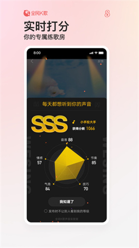 这是一个非常强大的KTV软件,你可以上传你的歌曲,并通过你喜欢的歌曲显示你的魅力。提供演唱练习模式、好友挑战竞技场、海量伴奏、趣味调音、趣味互动、社交分享等功能,为您的演唱找到一个稳定的归宿。