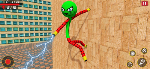 2、采用简约3D画风,城市建筑、火柴人建模简洁明快,绳索摆动、武器射击等特效流畅,还原老版本经典视觉质感。