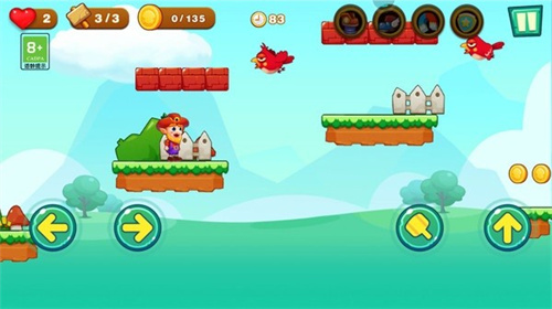轻松简洁的操作方式,横版冒险,不断移动跳跃,使用木槌进行攻击。