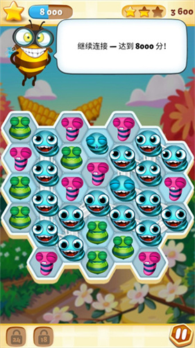 1.创新的消除体验:通过连接同色蜜蜂,触发连击,释放强大的道具,让你的游戏过程充满惊喜。