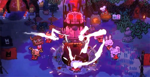 1、风格强烈的视觉与主题反差:游戏采用色彩鲜明、线条圆润的卡通画风,与“邪教”、“献祭”、“暗黑”等核心主题形成巨大反差,营造出一种诡异又可爱的独特黑色幽默美学,令人过目不忘。