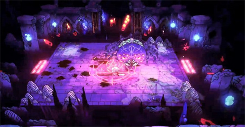 2、Roguelike地牢战斗探索:冒险部分采用俯视角动作战斗。每次进入地牢,地图、房间、敌人和宝物都会随机生成。玩家可以使用找到的各式近战武器(如斧、剑)和远程法术进行战斗,通过翻滚躲避攻击,并收集击败敌人后掉落的“信仰”与资源,用以强化圣地。