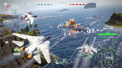 1、有各种各样的战舰可供玩家去选择加入战斗,不同的战舰有不一样的武器可以让你使用