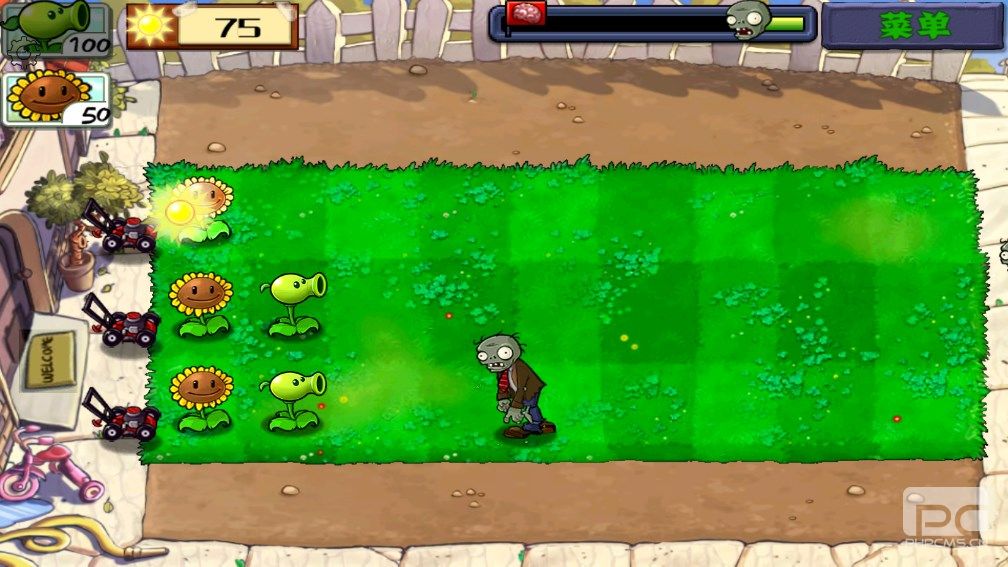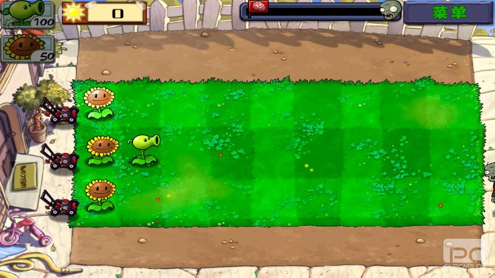 4、选择有僵尸的路径放置豌豆射手以此来击败僵尸,并随着击败僵尸的关卡还可解锁更多的植物以及玩法。