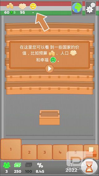 5、在左上角这里,您可以看到国家的一些价值,比如预算、人口和幸福。