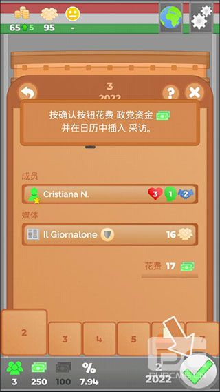 18、完成上述操作后,按确认按钮,花费政党资金并在日历中插入采访。