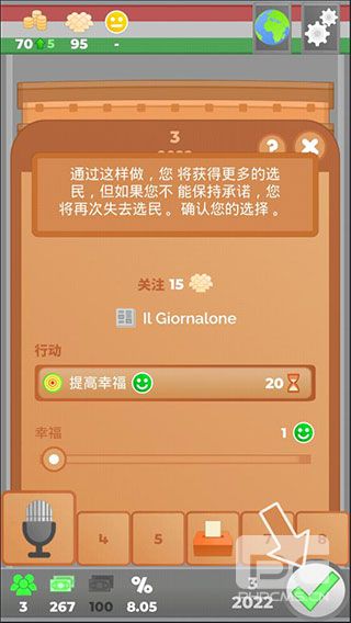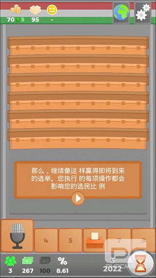3、动态选举与事件系统:游戏拥有动态的选举系统和随机事件,每局体验都可能不同。玩家需要应对不断变化的政治局势,突发事件的挑战,这使得游戏过程充满变数和新鲜感。
