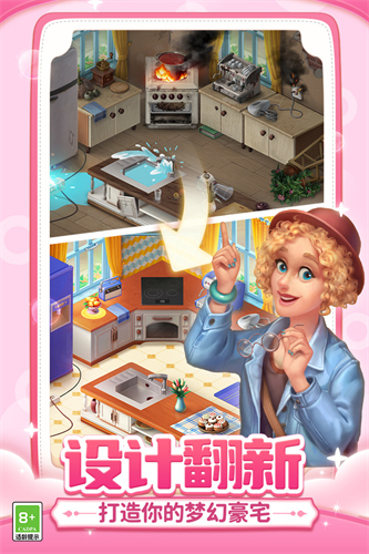 经典的三消+附属玩法非常不错,画面精美而且老少皆宜。游戏内还有较完整的剧情,让玩家在游玩的过程中还能体验剧情,有着欧美的风格。与其说帮奥斯汀说服父母不卖老房子,更像是让老房子重换新颜。喜欢休闲益智类的朋友快来下载吧!