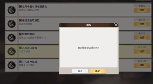 如果想要获得更多的经验,还可在加入公会后,每日选择任务进行经验的补充。委托任务和组队任务完成时,非常适合中期阶段的过渡,等待船只的等级达到20级以后就可以转向委托任务优先完成了。在委托任务中,经验的收益是非常高的,效率要比主线任务高很多,如果能够担任队长进行组队,将可额外获得丰富的经验加成。