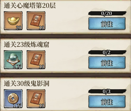 别把它们当成挑战!【心魔塔、炼魂窟、鬼影洞】这三个历练玩法不是用来“攻克”的,而是专门让你“领到手软”的福利池。玩法轻松简单,轻轻松松完成【江湖之路】中的挑战任务,拿下任务【探索度】,通关还能获取十连抽的高级侠客令、海量经验丹&突破丹、强力防具,在通关过程中还能不停升级侠客战力,这日子岂不美哉!