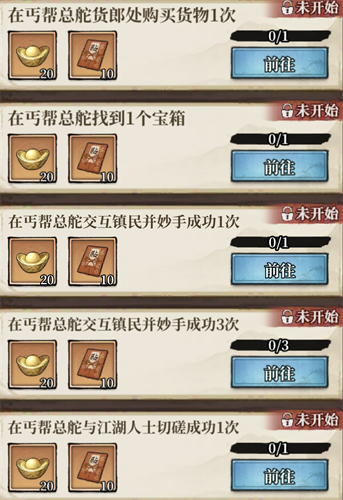 每天登录就是第一步需要做的任务啦!在【江湖之路】,除了【探索度】以外,从防具到升级经验再到高级侠客令,每天登录都可以获取不同的道具福利!