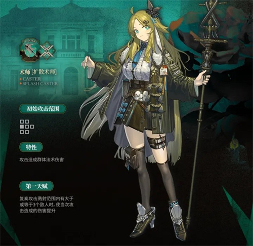 天赋(第一天赋):当攻击溅射范围内有 ≥3 个敌人时,当次攻击伤害提升,满配状态下最高可提升 130% 。
