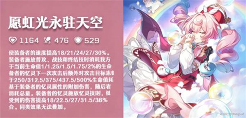 专武「愿虹光永驻天空」:18%速度+18%易伤+烧血,提升显著,但非刚需